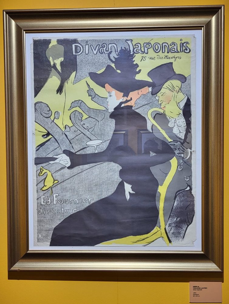 Nella prima sala si vedono alcuni dei più importanti manifesti, le “affiches” in francese, e delle illustrazioni realizzate dall’artista sia su commissione, sia per propria iniziativa. Il manifesto fu preponderante nell’opera dell’artista. La sua produzione iniziò verso la fine del 1800, quando il quartiere di Montmartre divenne punto di incontro di un gruppo di artisti giovani e innovativi, tra i quali Henri de Toulouse-Lautrec.